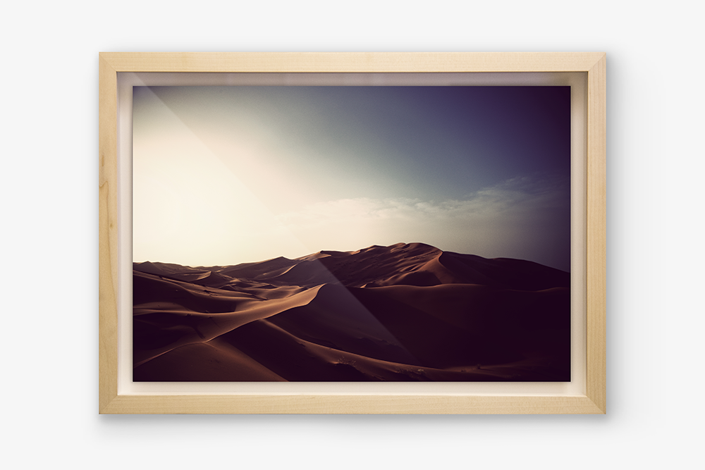 Give more depth to your pictures with a Shadow Box frame. Your photo print is then mounted and framed in a deep and made to measure Shadow Box frame with a noticeable distance between the print, which is at the back, and the front glass.